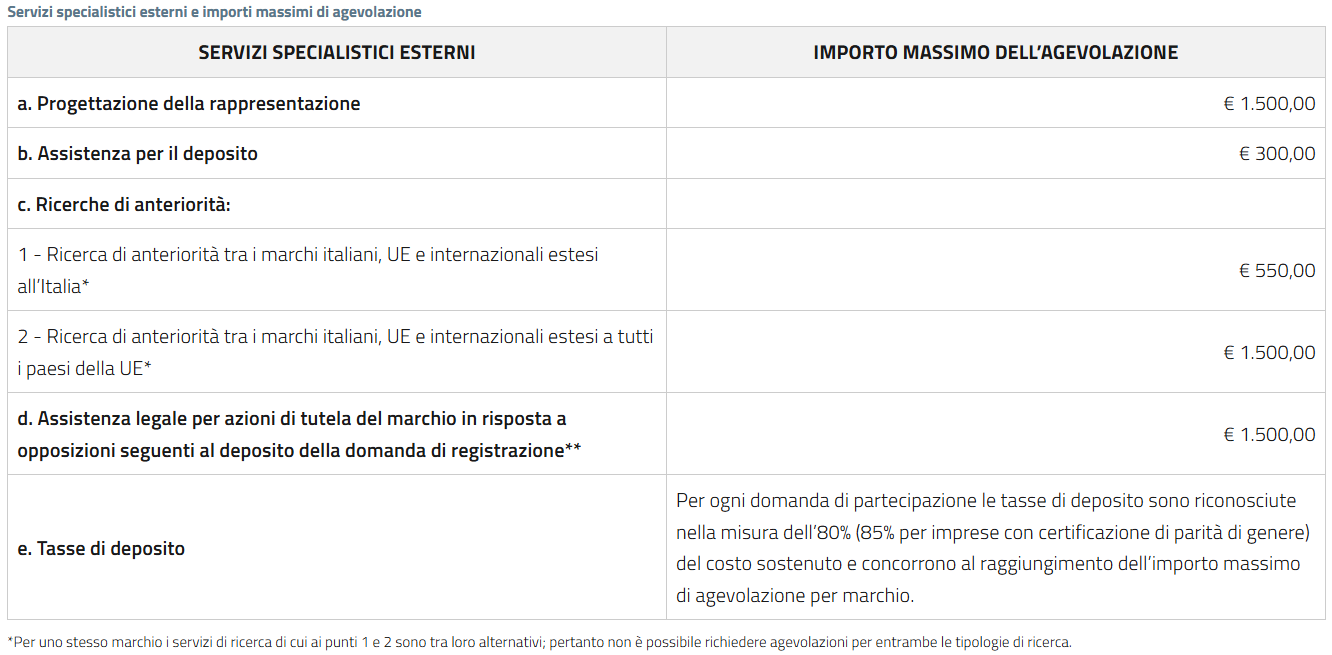 - Misura A: Agevolazioni per favorire la registrazione di marchi dell’Unione europea;